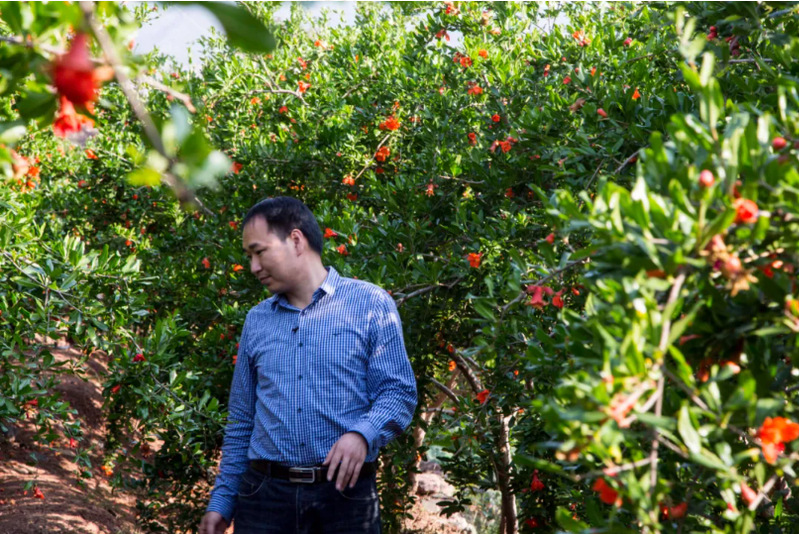 春夏交接的乌蒙山区,正值久旱无雨的干季。万亩荒山上,新种植的石榴树在顽强生长,枝头朵朵红石榴花格外醒目,惹人喜爱。看着脚下汩汩而去的渠水,前来复核水渠质量、查看石榴种植项目的王洪涛,十分欣喜。
